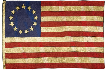 Though now official, the specific arrangement of the stars in the “new constellation” was generally left to the flag makers. This not only led to various interpretations but gave rise to the legend of Betsy Ross designing the first flag. We have been taught for generations in school that George Washington commissioned Philadelphia seamstress Betsy Ross to create a new flag for a new nation in early 1776, a year before the Continental Congress would pass its resolution establishing the general design for a national flag. As told by her grandson in the 1870s, Betsy Ross was visited by Gen. Washington and several members of a secret committee established by the congress who would all agree to her suggested design. There are nearly as many variations to this story as there were stars on the original flag. Though the legend of Betsy Ross endures today, historians generally believe the story(s) to be a myth.